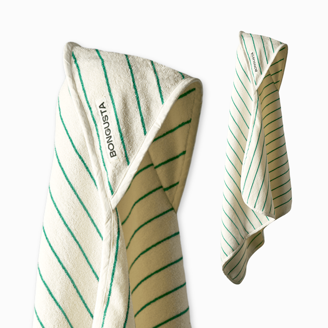 Babyhåndklædet er OEKO-TEX® certificeret, hvilket garanterer, at det er fri for skadelige stoffer – et trygt valg for både børn og forældre. Det fås i legende farvekombinationer og karakteristiske striber, som er kendetegnende for Bongustas designunivers.