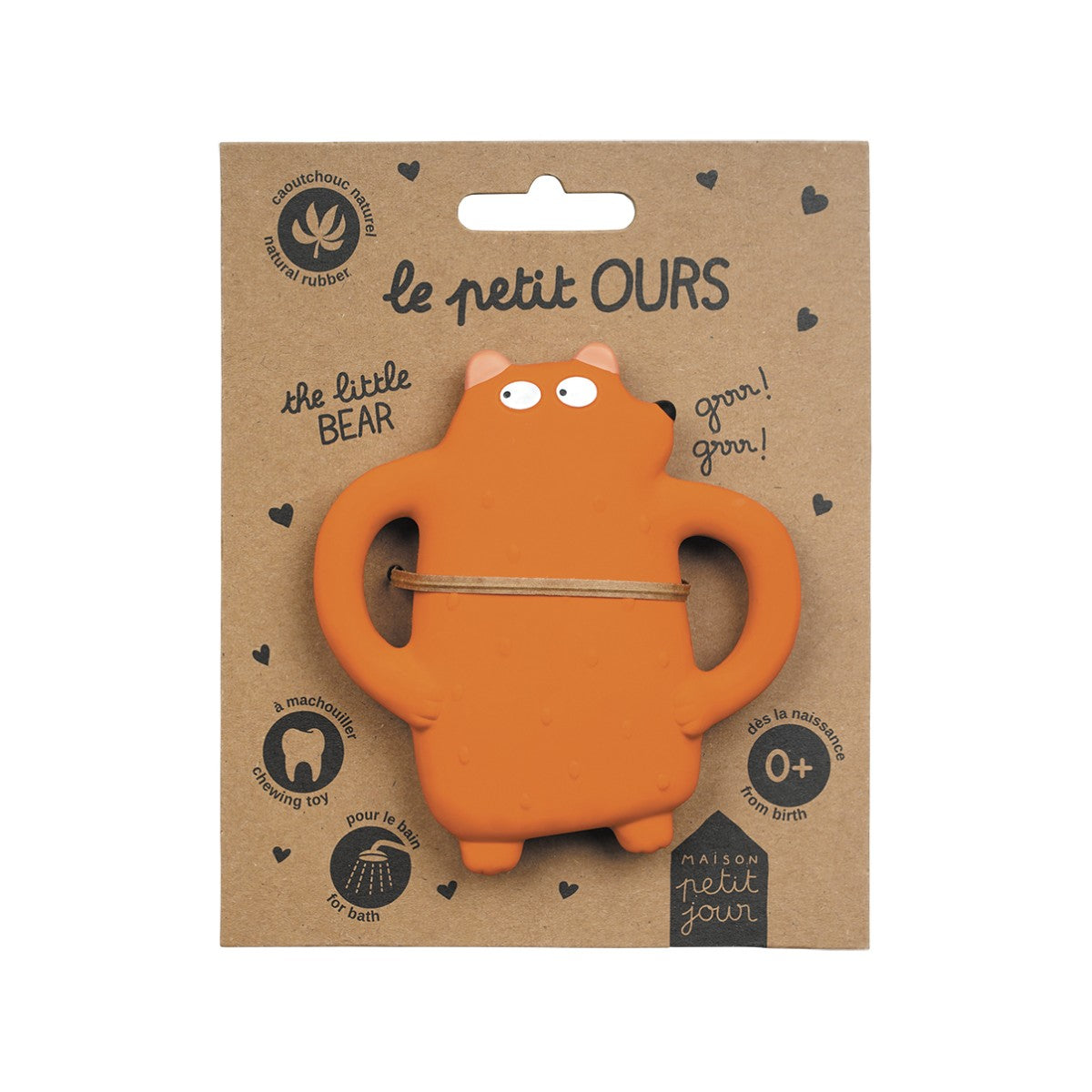 Denne skønne bjørn er fremstillet i naturgummi, som er designet til at give beroligende lindring til din baby's ømme tandkød under tandfrembruddet. Bideringens form, gør det nemt for de små fingre at holde fast i. Den bløde og strukturerede overflade masserer og stimulerer babyens tandkød, hvilket lindrer ubehag og irritation.