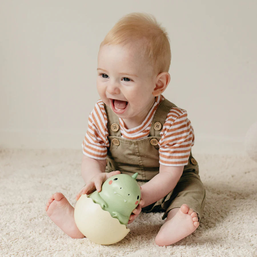 Roly Poly Dino elsker at blive puffet til, skubbet eller væltet – og han rejser sig altid op igen, klar til endnu en runde sjov!